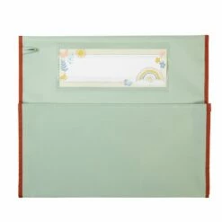 - DURABLE: Made of durable water resistant fabric, our chair pocket organizer is 16″ x 12″ (inside width 16″ x 8 ½” deep). Clear plastic sleeves hold a replaceable name tag (size 9 ¾” x 3 ½” each).