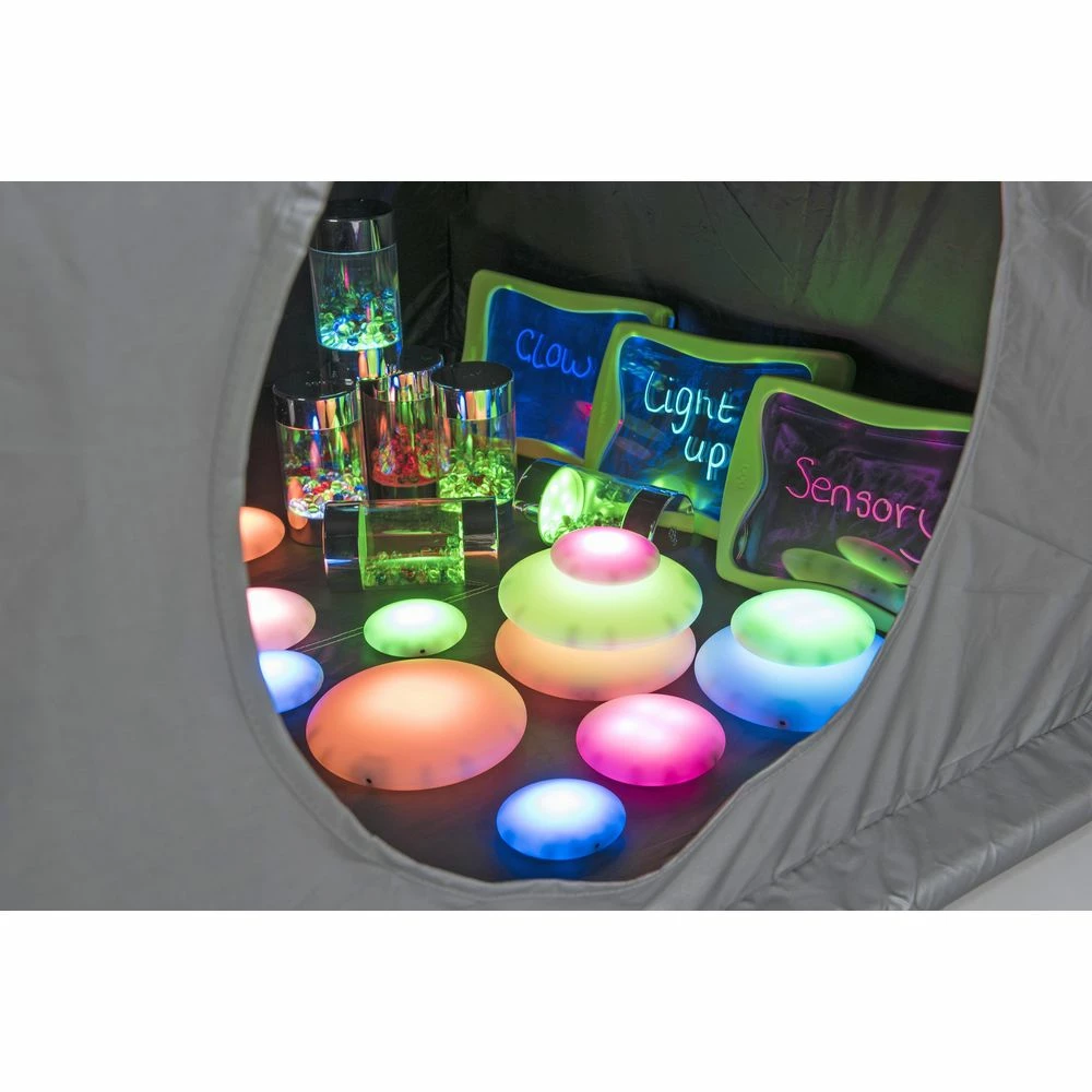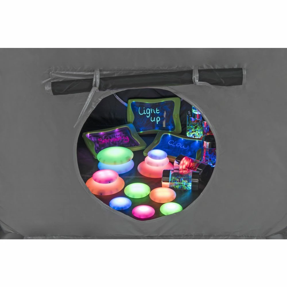 The Dark Den features a nylon double skin that blocks out the light, making it ideal for using flashlights, lights and glowing objects to create a cozy space.