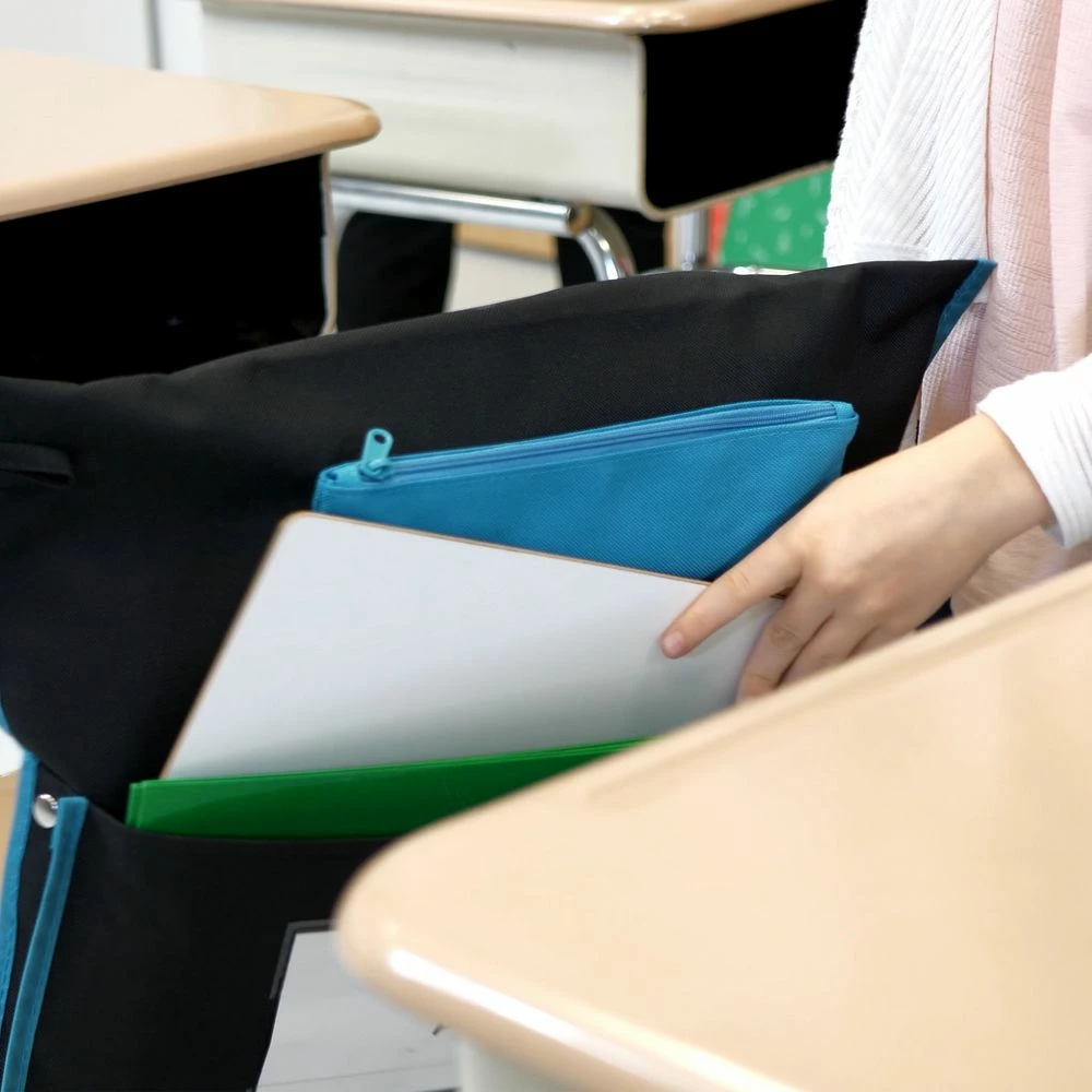- PERFECT FIT: Easily slip these sturdy organizers over the backs of your classroom chairs to instantly boost your storage space. They don’t need to be tied on, so they are more secure on the chair.