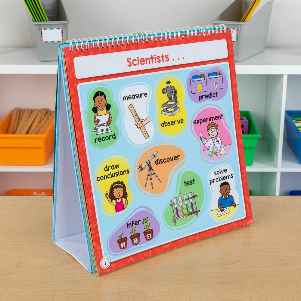 Support any science lesson with this colorful, write-on/wipe-off flip chart. It has 40 pages chock-full of key science information. Topics align with the NGSS.20 Double-Sided Sheets/40 Pages: With 40 pages of colorful science references, this flip book will soon become an essential teaching tool.Write-On/Wipe-Off Pages: Write on the pages with dry erase marker. When youre done, just erase for next time.Stand-Alone Chart Perfect For Use With Groups: At 12″ by 13″, this tabletop flip chart is an ideal size for working with small groups.Aligned With Standards: The science topics in these 40 pages are aligned with the NGSS for early elementary grades. Topics cover life science, earth science, and physical science.Durable Pages Designed To Last: The Write Again wipe-off laminate adds durability. Use this flip chart year after year. Its a great investment!Keep 40 pages of colorful science references aligned to the NGSS at your fingertips with this write-on/wipe-off flip book!