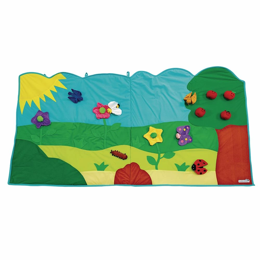 Set a soothing atmosphere for the classroom. Soft, interactive play wall is an inspiration for nursery rhymes, storytelling and songs. Product measures 72″L x 36″H and is made of 100% plush polyester.