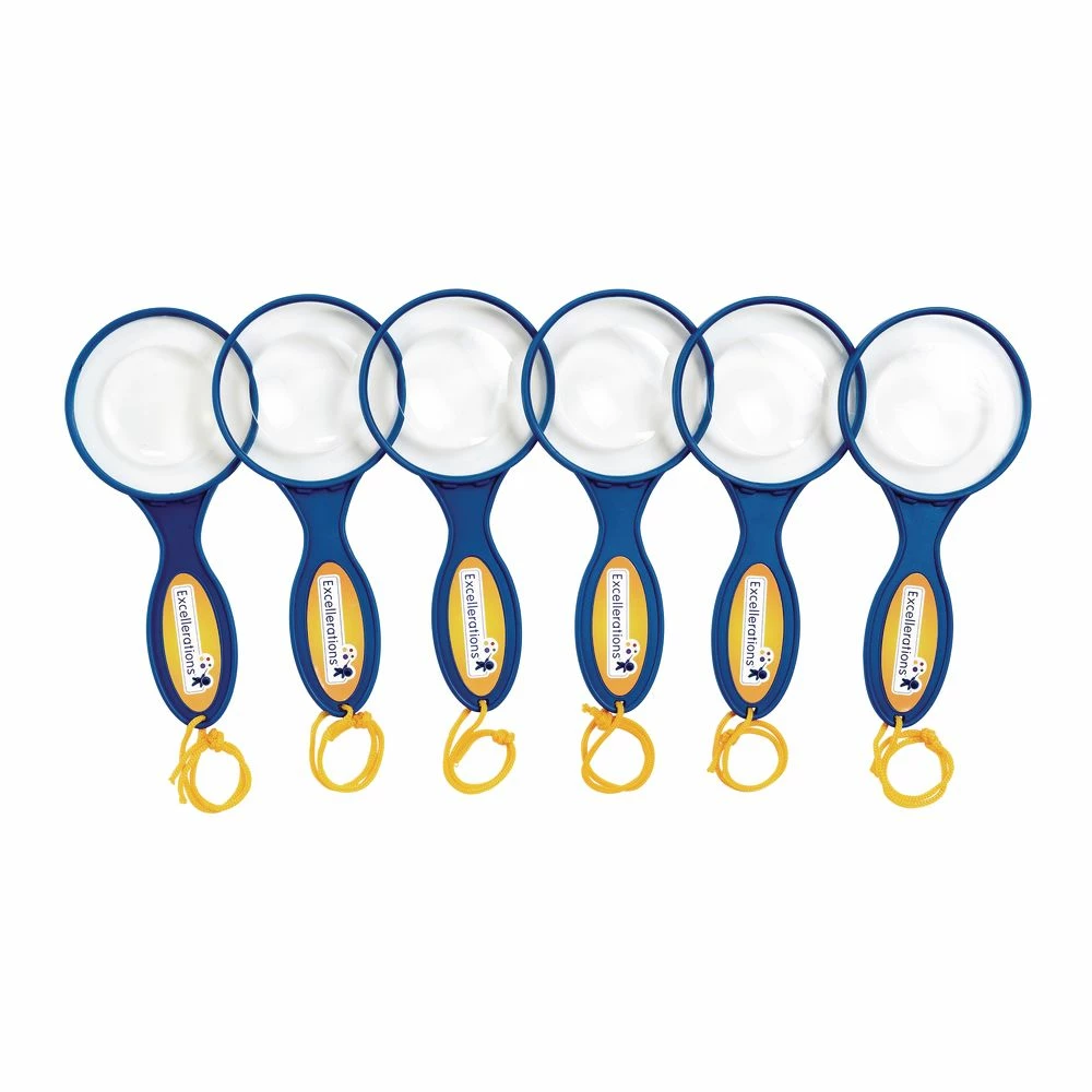 - SET INCLUDES: 6 blue magnifiers with yellow handles to keep children from loosing or dropping magnifiers.