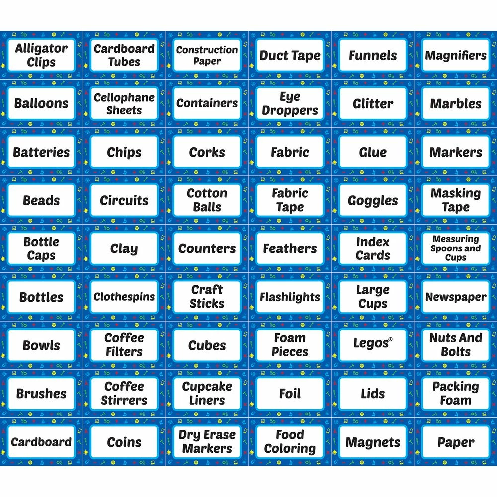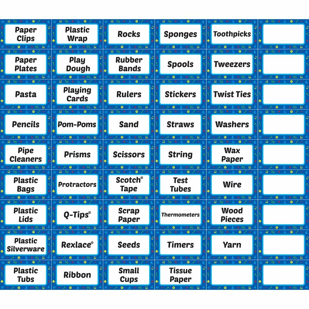 Place these repositionable peel-and-stick labels on classroom containers to identify science, STEM, and maker space materials. You can peel the labels off and reuse them as needed. The set includes labels for 98 common materials and 10 blank labels to customize as you please.