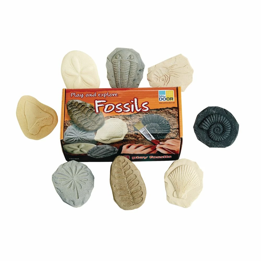 Children will delight in discovering and examining this set of 8 realistic, tactile specimens including ammonite, clam shell, fern leaf, preserved leaves, sea urchin, sharkās tooth, shrimp and trilobite.