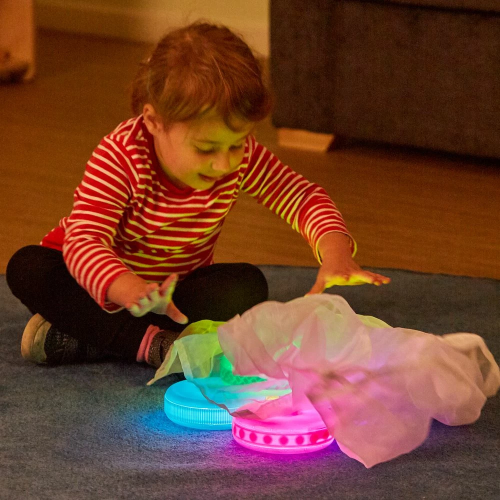 - VERSATILE: A truly versatile and engaging set. Learn about cause and effect and stimulus response as you turn the cogs and shake the discs and see them light up.