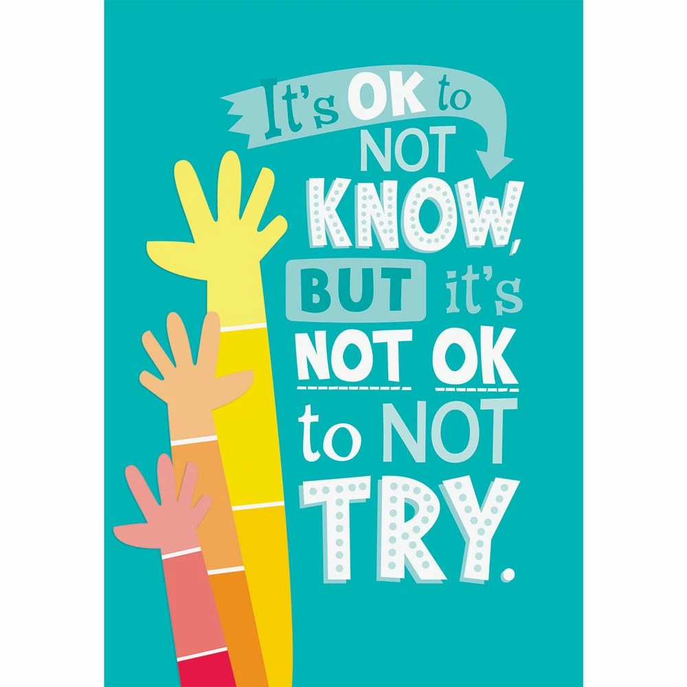 Let this colorful, inspirational poster help you teach your class that it’s OK to not always know the answer as long as they try their best.