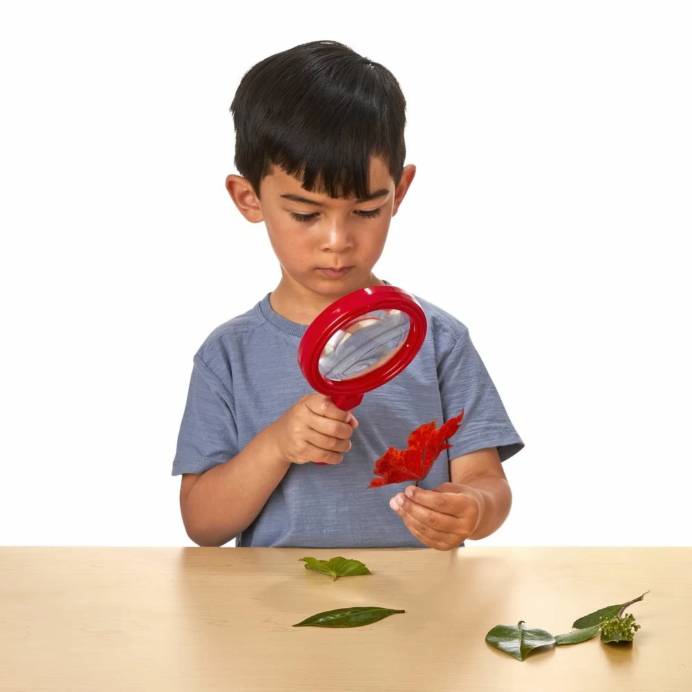 Observe on a grand scale with extra-large magnifiers, sized perfectly for small hands. Supports life science explorations as children observe plants, animals and insects. Features built-in stands for hands-free viewing.