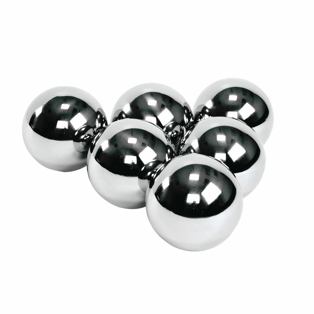 A set of 6 reflective mirror balls that look identical but have individual characteristics.