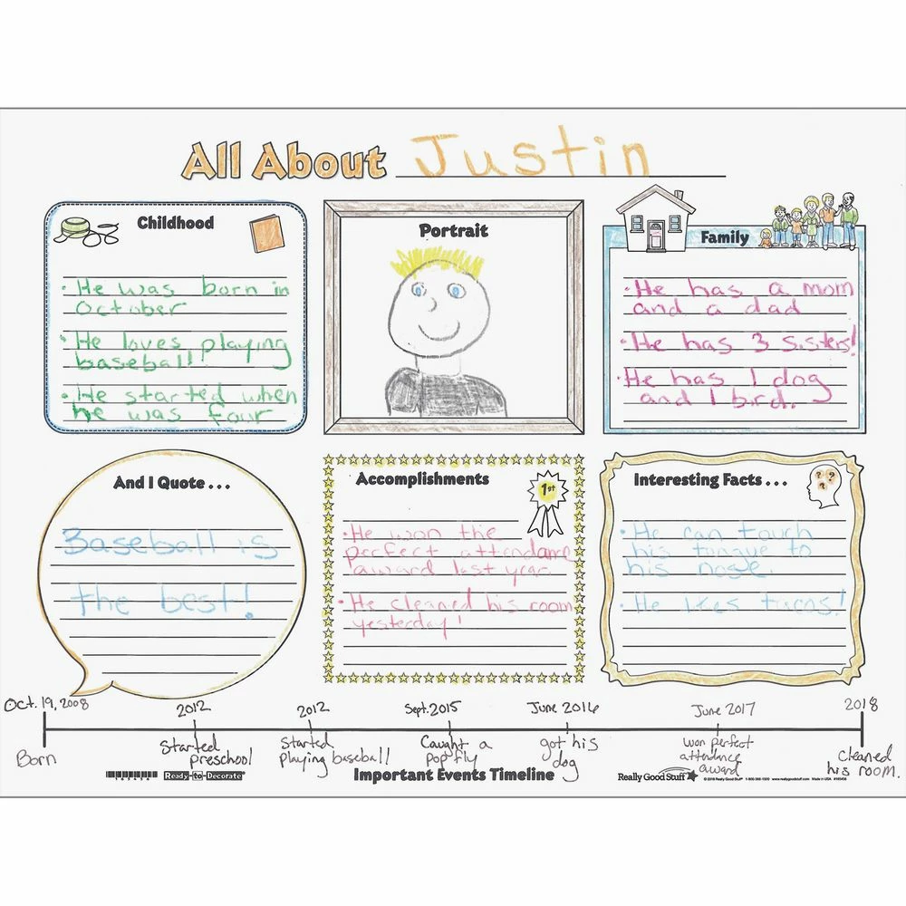 This biography poster gives students space for a portrait, childhood and family information, quotes, accomplishments, interesting facts, and an important events timeline about a person of their choice.