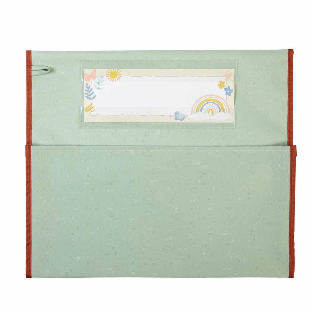 Really Good Stuff chair pockets will add a colorful touch to your classroom décor and keep your room and students organized. The classic boho design is perfect to coordinate with any décor in today’s classroom. This chair pocket won’t take up any extra room and will allow students to store books, folders, and more on the backs of their chairs, freeing up space inside their desks. You get a single chair pocket that measures 16.5” x 15”, inside pocket width is 16.5″ x 8.5″ deep. This chair pocket also comes with a sturdy boho color name tag, Each nametag measures 9.75″ x 3.5″. Our durable chair pockets are made of strong, woven polyester and nylon fabric designed to withstand whatever your students can dish out. Spot clean with soap and water. This chair pocket features a roomy pouch for books and supplies, a stitched-on loop for hanging, and a clear sleeve to display the name tag (included)! Each chair pocket is designed to fit most standard elementary student sized classroom chairs. They will be the perfect addition to your classroom.