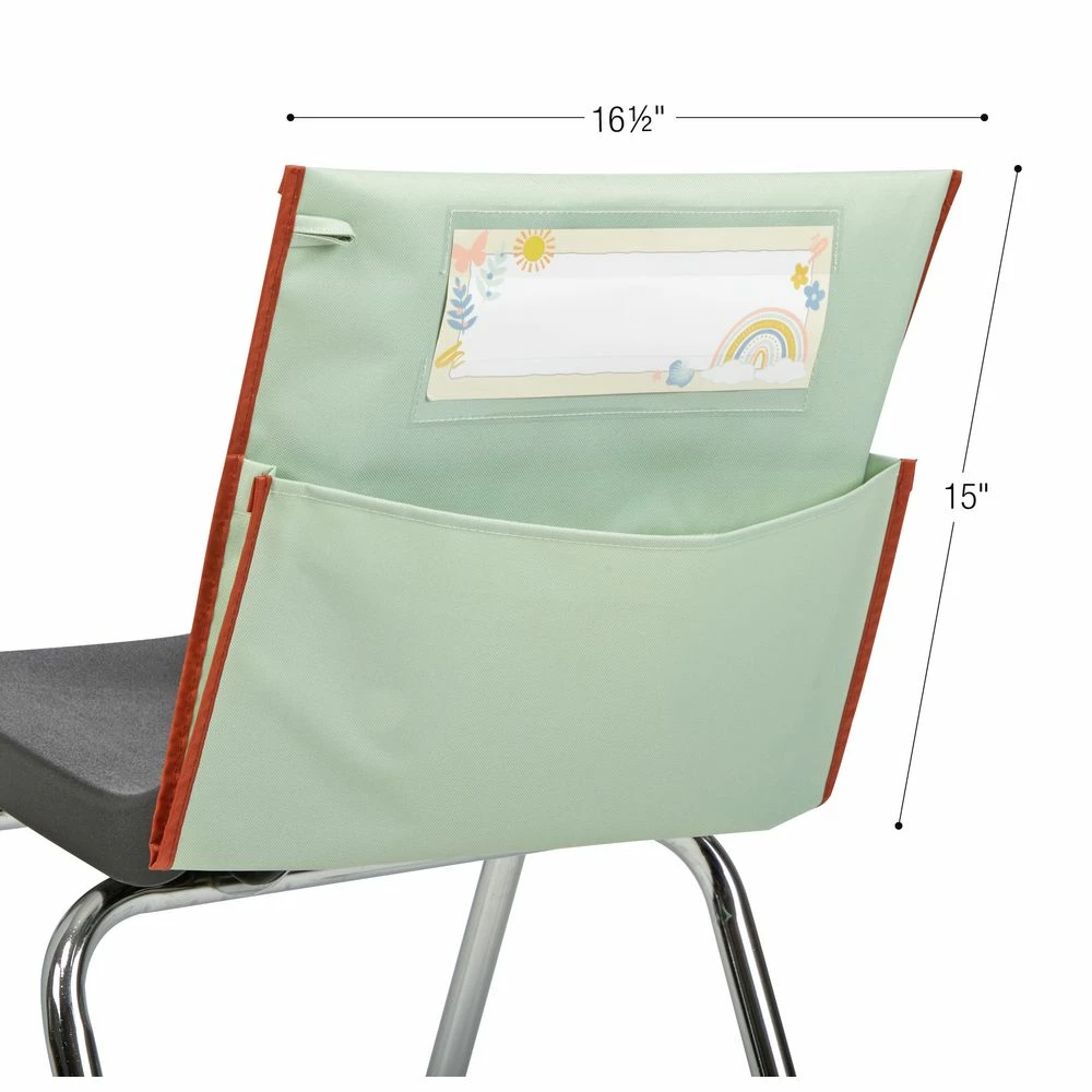 - MADE TO LAST: Our durable chair pockets are made of strong, woven nylon fabric designed to withstand whatever your students can dish out. Spot clean with soap and water. Each chair pocket features a roomy pouch for books and supplies, a stitched-on loop for hanging, and a clear sleeve to display the name tag (included)!