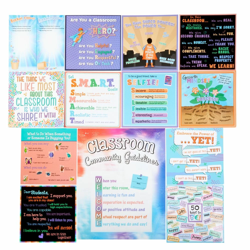 - CREATE A POSITIVE CLASSROOM COMMUNITY: This poster set features messages including setting goals, mindfulness, how to resolve problems, encouragement, self-reflection, growth mindset, and more.