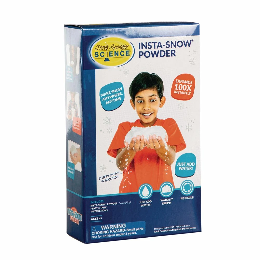 No matter what quantity of Insta-Snow you choose, you’ll get all of the materials you need including mixing instructions and the scientific explanation. You’re getting a “WOW” factor with a ton of scientific application. Recommended for children ages 4 and up with adult supervision.