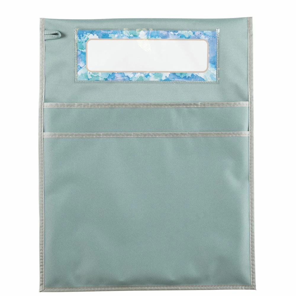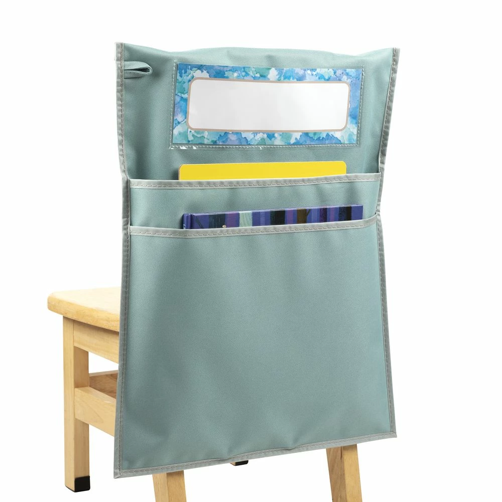 This calm colored chair pocket won’t take up any extra room and will allow students to store books, folders, even sit-upons on the backs of their chairs, freeing up space inside their desks and around the classroom. You get a single water colored chair pocket that measures 15″W x 19″H, with 2 large pockets. The inside width is 14.25″, and the back pocket is 13″ deep, while the front pocket is 11″ deep. The chair pocket also comes with 1 name tag. Each nametag measures 9.75″ x 3.5″. Our durable chair pockets are made of strong, woven nylon fabric designed to withstand whatever your students can dish out. Spot clean with soap and water. This chair pocket features a roomy pouch for books and supplies, a stitched-on loop for hanging, and a clear sleeve to display the name tag (included)! Each chair pocket is designed to fit most standard elementary student sized classroom chairs. They will be the perfect addition to your classroom. Research has shown that cool and calm colors allow students to maintain higher focus levels. If you want to create a cool and calm color scheme in your classroom, this chair pocket will be the perfect addition.