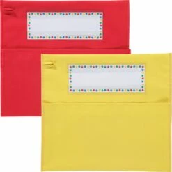 Your Space Saving Storage Solution! These Chair Pockets are a must-have for in the classroom or at home, they allow you to save space for easy organization. Really Good Stuff Chair Pockets offer roomy gusseted pockets and clear plastic sleeves which hold a replaceable name tags. Choose a style and color that best fits your classroom. Efficiently and effectively managing your classroom is one of your many keys to a successful school year. Keep your students – and yourself – organized with Really Good Stuff Store More Dual Storage Deep Pocket Chair Pockets. Chair pockets have a roomy storage pocket, fit comfortably over the students chair, and don’t need to be tied to the chair. They will stand up to your energetic students and are easily spot cleaned if a kid-sized mess should happen.Made of strong, durable fabric with a stitched-on hanging loop, our chair pocket organizer is 17″ x 13″ (inside large pocket width 17″ by 12″ deep and inside smaller pocket width 16″ by 9″ deep), has 2 roomy storage pockets with two metal rivets. A clear plastic sleeve on each chair pocket holds a replaceable name tag (size 9 3/4″ x 3 1/2″ each), so your chair pockets are an economical investment for your classroom that can be used year after year. In addition to helping students organize books and papers, our Store More Dual Storage Deep Pocket Chair Pockets are durable and water resistant.Available in a variety of styles, fun colors and designs, Really Good Stuff chair pockets will add a colorful touch to your classroom decor and keep your room and students organized.