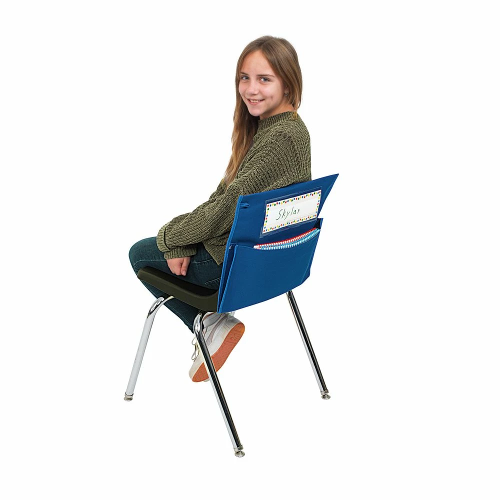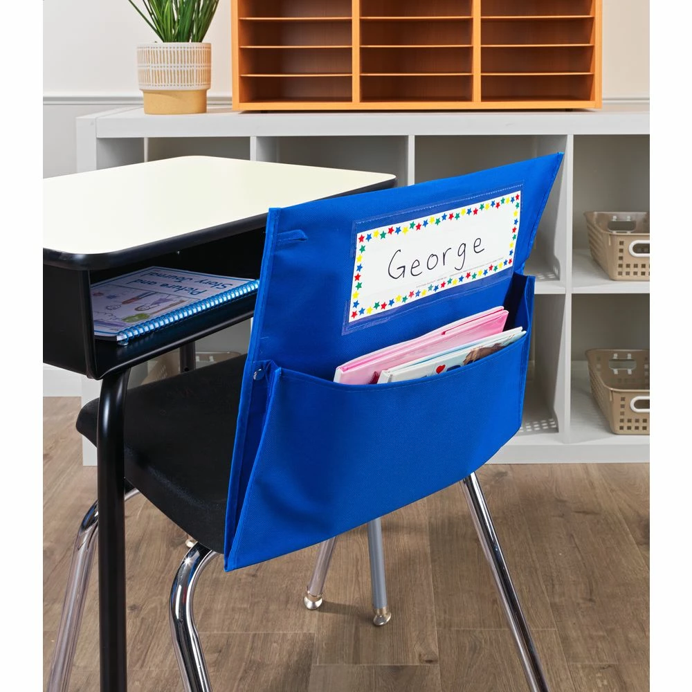 These sturdy chair pockets not only help students organize their materials, they allow you to color-code groups for easy classroom management. Clear plastic sleeves hold a replaceable name tag.