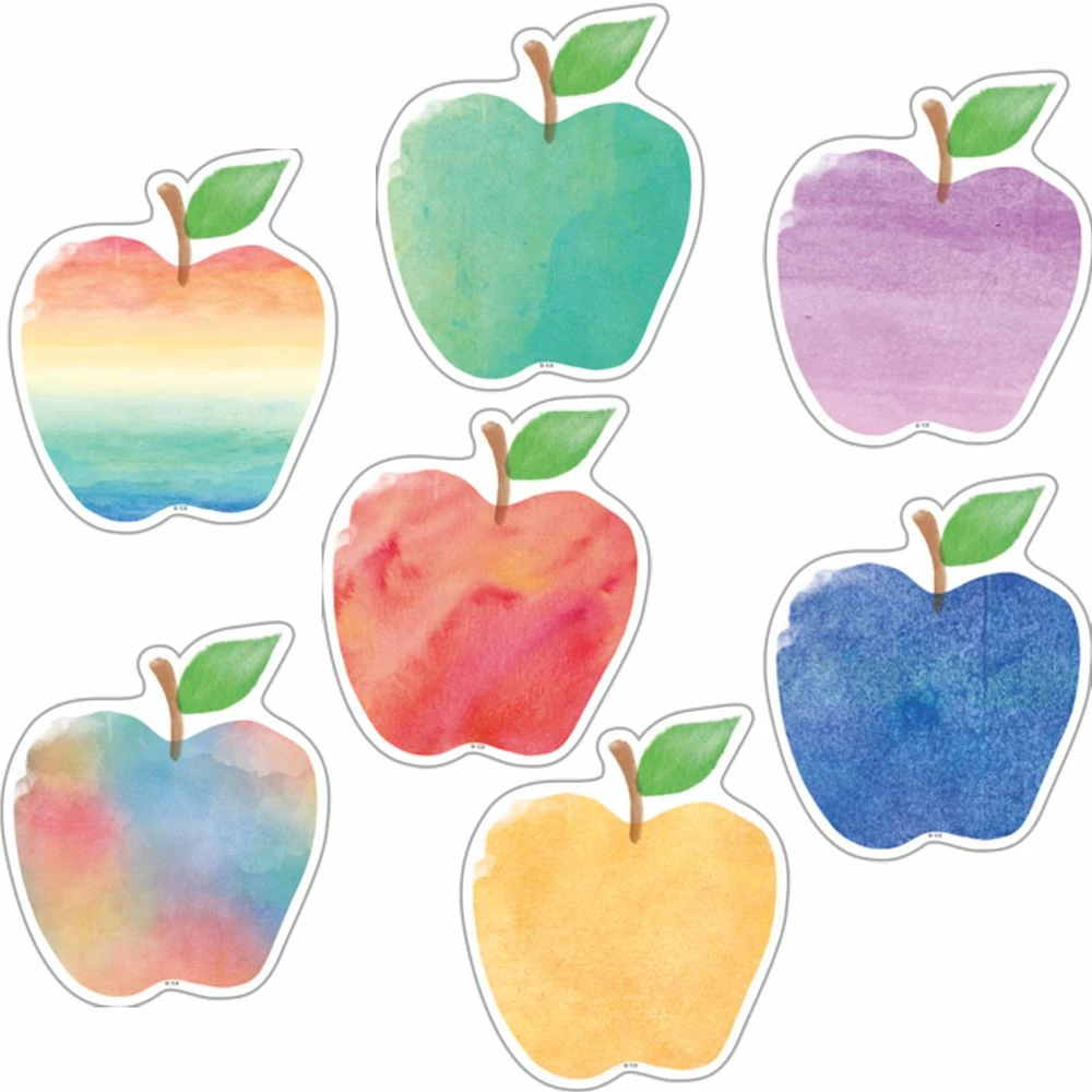 Accent bulletin boards, walls, doors, and more with these decorative apple cutouts in pretty combinations of watercolors. Ideal for labels, flash cards, name tags, and more, they complement other attractive tools and dÉcor in the Watercolor line.