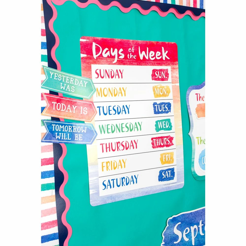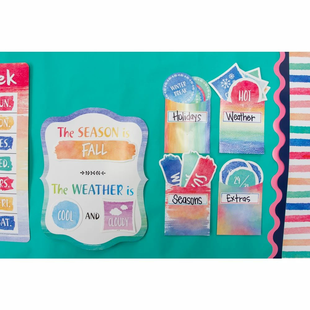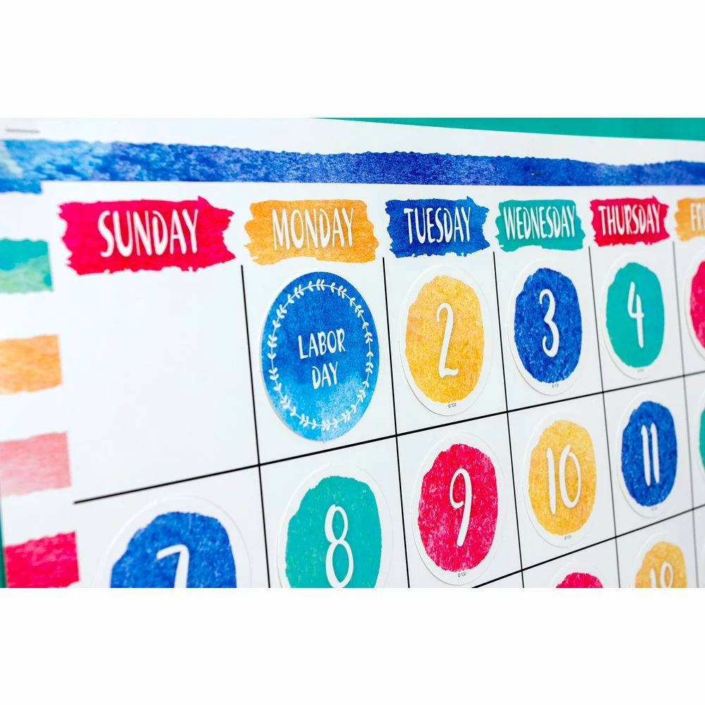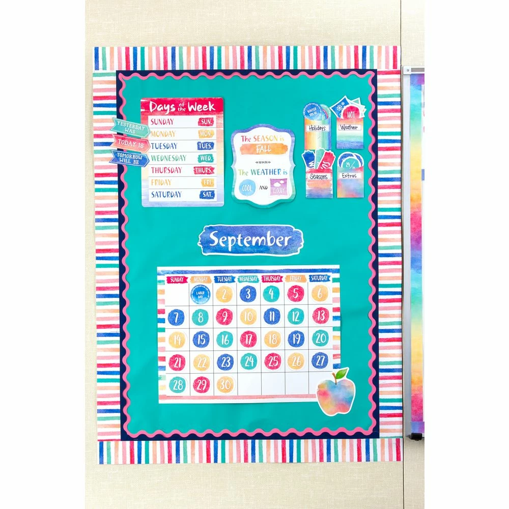 This beautiful calendar set includes easy-to-read number pieces, monthly headers, and markers for holidays and special occasions, as well as yesterday, today, and tomorrow. Combine it with other Watercolor items to unify the look of your learning environment.